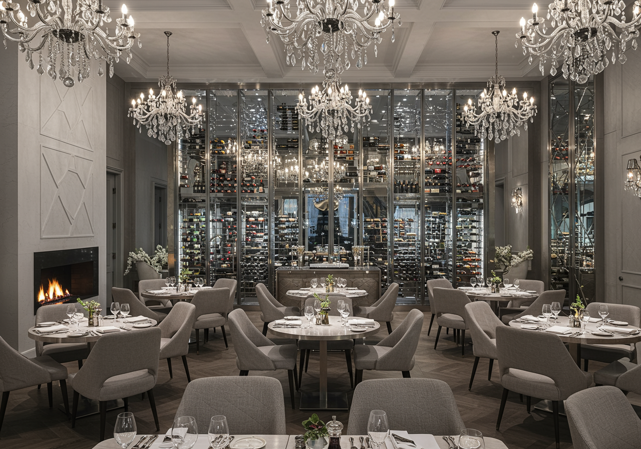 The establishment is known for its meticulous attention to detail, offering patrons a luxurious dining atmosphere with dimly lit interiors, plush leather seating, and an extensive collection of fine wines and martinis.