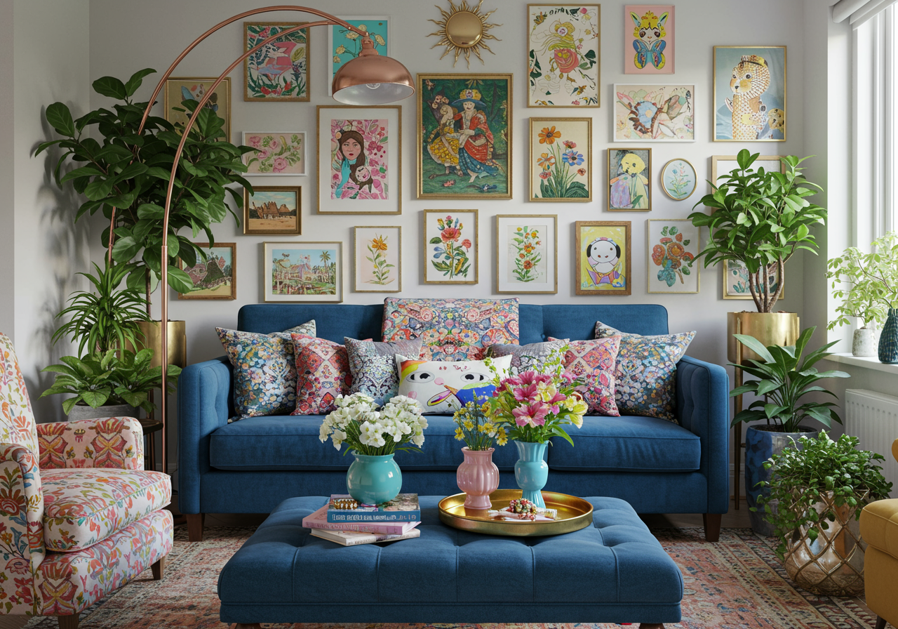 If the abundance of color feels a tad overwhelming, remember that while saturated hues are vital, strategic use of white as a backdrop can introduce balance and allow the bolder tones to shine. Use white strategically to offer a touch of visual spaciousness amidst the lively palette.