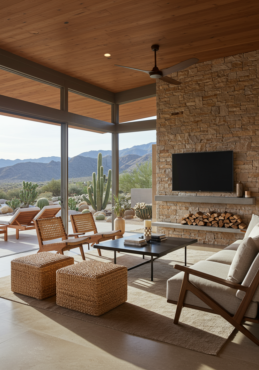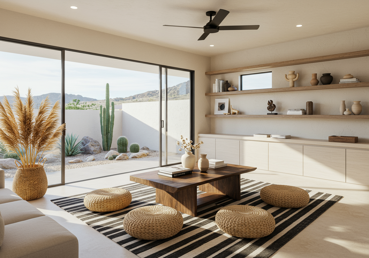 Desert-inspired accents: Incorporate elements like cacti, succulents, and desert-inspired artwork to bring the outdoors inside.
