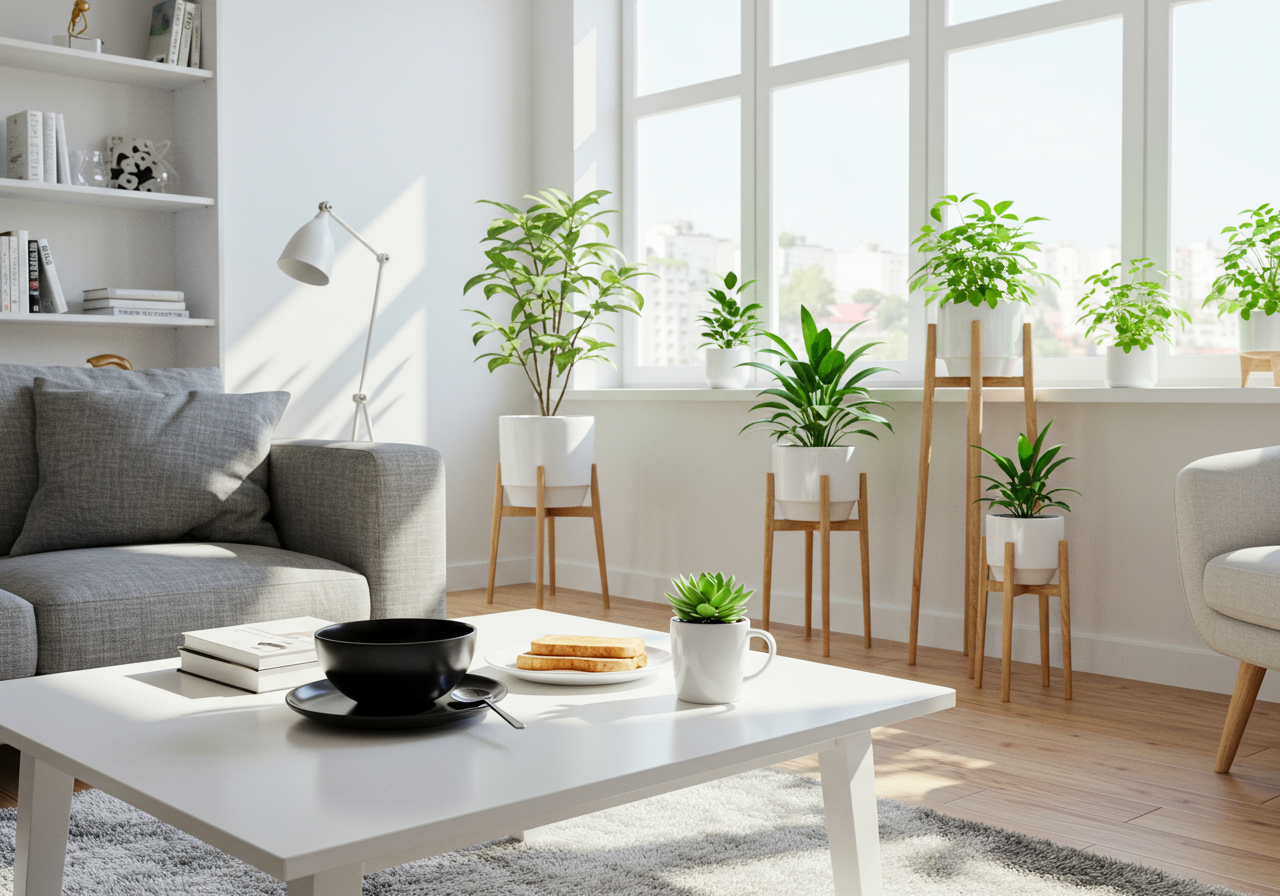 Add Greenery: Potted plants bring a touch of nature indoors and add a pop of color.